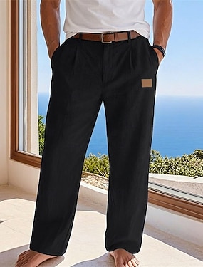 Pánské Plátěné kalhoty Oblekové Letní kalhoty Knoflíky Přední kapsa Straight-Leg Bez vzoru Pohodlné Prodyšné Ležérní Denní Dovolená Módní Základní Černá Bílá
