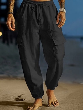 Pánské Plátěné kalhoty Kalhoty Plážové kalhoty Šňůrky Kapsy Elastický pas Bez vzoru Pohodlné Prodyšné Dovolená Denní Plážové Havajské Cikánský Světlá khaki Černá