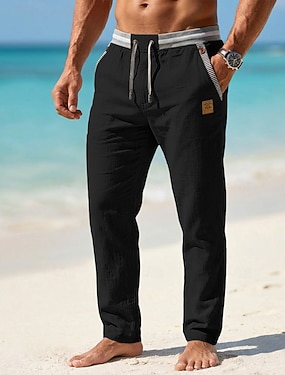 Pánské Plátěné kalhoty Kalhoty Letní kalhoty Plážové kalhoty Šňůrky Elastický pas Bez vzoru Pohodlné Prodyšné Venkovní Denní Jdeme ven Módní Šik ven Černá Bílá