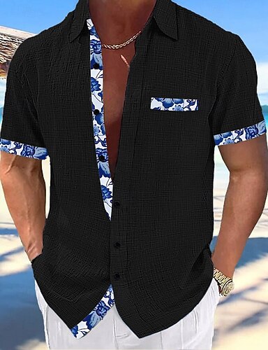 Pánské Košile plátěná košile Letní košile Oblečení na pláž Košile na knoflíky Bez vzoru Dovolená Curise Černá Bílá Světlá růžová Námořnická modř Krátký rukáv Límeček Léto Jaro Oblečení