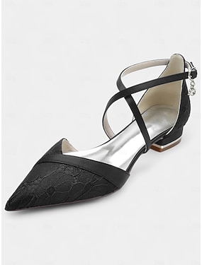 Černé balerínky s krystaly a špičatou špičkou s remienkem na podpatku pro družičky – elegantní saténové nízké podpatky na svatbu, večerní i společenské příležitosti pro ženy