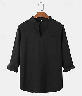 Pánské Košile plátěná košile Popover košile Letní košile Oblečení na pláž Košile s knoflíkem Pevná barva Dovolená ulice Černá Bílá Vodní modrá Khaki Dlouhý rukáv Stojáček Léto Jaro Oblečení