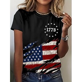 Den nezávislosti Americký výroční Patriotic Dámské tričko Tisk Grafika Písmeno Americká vlajka Stylové Klasické Pohodlné Krátký rukáv Kulatý krk Běžné Top Daily Černá Bílá Červená Léto Jaro