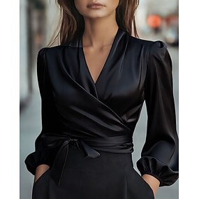 Dámské Košile Elegantní Saténový top Halenka Šněrování Bez vzoru Elegantní stylové Dlouhý rukáv Do V Běžné topy Denní Práce Dovolená Černá Fialová Trávová zelená Meruňková Léto Jaro Podzim