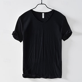 Pánské Bavlněné tričko Tričko Top Krátký rukáv Krátké rukávy Do V Léto Celý rok Bez vzoru Módní Designové Základní Klasický styl Základní Ležérní Dovolená ulice Vodní modrá Velbloudí Černá Top tričko