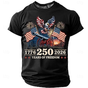 4. července 2026 250. pamětní den Pánské 3D potisk US vlajka crew neck krátký rukáv tričko každodenní ulice