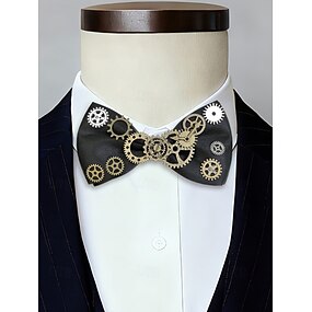 Pánský motýlek s ozdobnými ozubenými koly ve stylu steam punk - vícebarevný nastavitelný polyesterový motýlek pro karneval cosplay a tématické párty