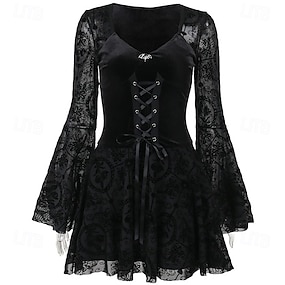 gotický Mini Šaty Zvonové Čerodějnice Krajka Samet Korzet Květinový Maškarní kostým Dámské Fantazie předvečer Všech svatých Karneval Výkon Párty Dospělí Šaty