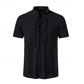 pánské středověké vikingské polo tričko tričko tradiční retro styl šněrovací košile s krátkým rukávem hippie odpovídající