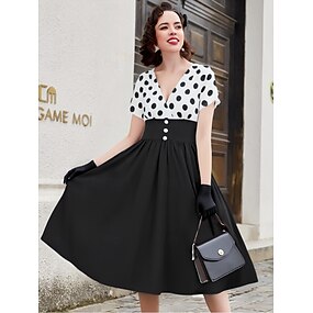 Retro Vintage 1950 Grease Oblečení Rockabilly Midi Šaty Swing Šaty Šaty s rozšířením Vysoký pas Puntíky A-čtverec Hluboký V Společenské Šaty Žen Karneval Novoroční Čajová Oslava Casual Denní Retro