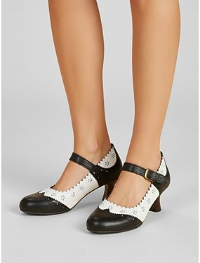 dámské vintage černé z 50. let &Bílé mary janes - elegantní brogue lodičky s výřezy na špičkách bot na retro večírky a akademické akce &klasický dámský styl