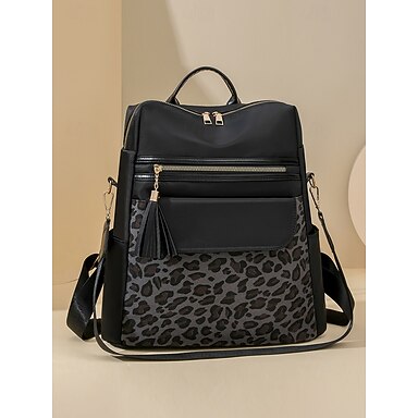 Dámský patchworkový batoh z tkaniny s leopardím vzorem, lze nosit na jednom rameni, s několika zipy, ideální do školy, na cesty a běžné výlety