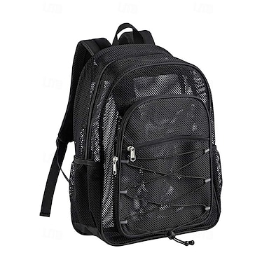 černý šedý síťovaný batoh s přihrádkou na zip, nastavitelný ramenní popruh, unisex, módní design - vhodný do školy, na sport, fitness i každodenní nošení