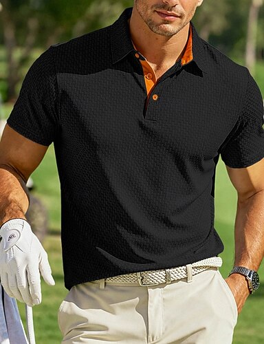 Pánské Pólo S texturou Ležérní Obchod Klopa Krátký rukáv Módní Moderní Bez vzoru Knoflíky Prodyšné Léto Jaro Běžný Černá Bílá Nebeská modř Khaki Šedá Pólo