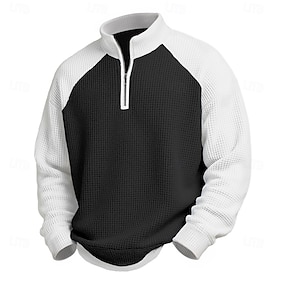 Pánské Waffle Polo tričko Polo na čtvrt zip Denní Dovolená Čtvrtletní zip Dlouhý rukáv Módní Moderní Bez vzoru Jaro & podzim Běžný Černá Bílá Námořnická modř Oranžová Tmavě šedá Šedá Waffle Polo