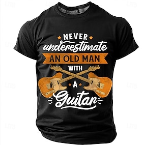 Pánské nikdy nepodceňujte starého muže s kytarou zkřížené kytary hvězdy vintage retro vtipné humorné tričko s grafikou regular střih Den otců narozeninový dárek značkové oblečení oblečení S M L XL XXL