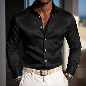 Pánské Saténová košile Košile k obleku Neželezná košile Košile na knoflíky Pevná barva Venkovní Obchod Vodní modrá Černá Bílá Světle zelená Dlouhý rukáv Přehnutý Léto Jaro Oblečení Knoflíky
