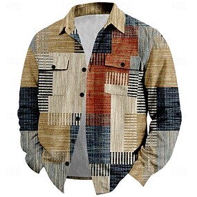 Pánské Pléd Geometriské vzory Kordurová košile Košile bunda Overshirt Dlouhý rukáv Vinobraní Obchodní příležitostné Venkovní Na den Podzim zima Přehnutý Košile s límečkem Knoflíky 3D tisk 2 kapsy 1ks