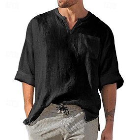 Muži Košile Lněná košile Popover košile Košile pro volný čas Bavlněná lněná košile Bez vzoru Streetwear Dovolená Vodní modrá Černá Khaki Šedá Dlouhý rukáv Do V Jaro & podzim Oblečení Kapsy