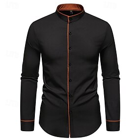 Pánské Košile Čínská košile s límečkem Košile s mandarinkovým límečkem Košile k obleku Košile na knoflíky Barevné bloky Svatební Denní Černá Bílá Tmavě námořnická Armádní zelená Dlouhý rukáv límec