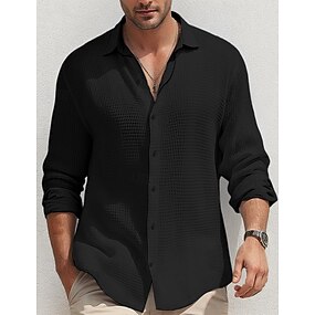 Pánské Košile Letní košile Košile na knoflíky Košile pro volný čas Wafflová košile Černá Bílá Vodní modrá Khaki Dlouhý rukáv Bez vzoru Klopa Denní Dovolená Oblečení Módní Na běžné nošení Pohodlné