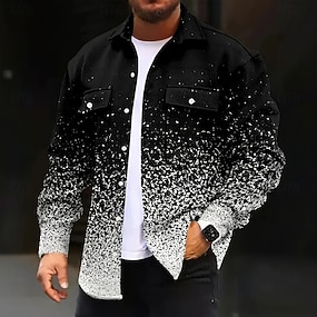 Pánské Tečka Barva přechodu Kordurová košile Košile bunda Overshirt Dlouhý rukáv Na běžné nošení Venkovní Na den Podzim Zima Přehnutý Tlačítko dolů Teplé Bunda s klopovými kapsami Černá