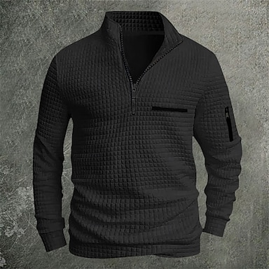 Pánské Waffle Polo košile Pullover Sporty a outdoor Denní nošení Čtvrtletní zip Dlouhý rukáv Módní Pohodlné Barevné bloky Zapni Kapsy Jaro & podzim Běžný Vodní modrá Černá Bílá Oranžová Waffle Polo