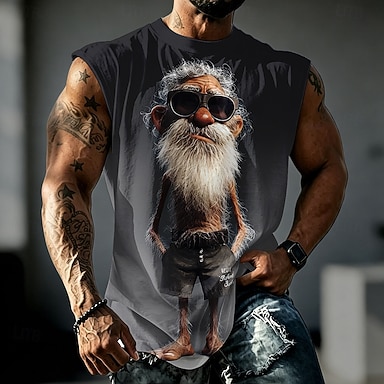 Pánské Tónované Starý muž Tílka Bez rukávů tričko 3D tisk Tričkový Košile Legrační Ležérní Denní ulice Vodní modrá Černá Rubínově červená Jaro léto Oblečení S M L XL 2XL 3XL