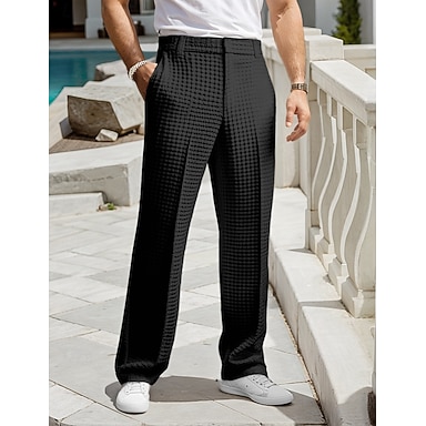 Pánské Kalhoty Oblekové Oblek Kalhoty Vaflové kalhoty Přední kapsa Straight-Leg Bez vzoru Pohodlné Plná délka Obchod Denní Dovolená Módní Elegantní & moderní Černá Bílá Elastické