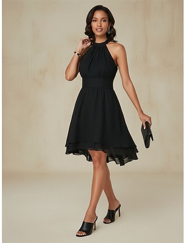 Dámské Maxi šaty Černé šaty Šaty na párty Koktejlky Šifonové šaty Elegantní Módní Klasické Denní Venkovní Plážové Běžný Bez vzoru Bez rukávů Krk ohlávky Černá Fialová Léto Jaro