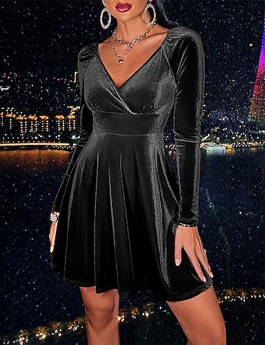 Dámské Mini šaty Černé šaty Vánoční šaty Sametové šaty Koktejlky Módní Moderní Kancelář Večerní oslava předvečer Všech svatých Běžný Bez vzoru Dlouhý rukáv Tričkový Černá Rubínově červená Trávov