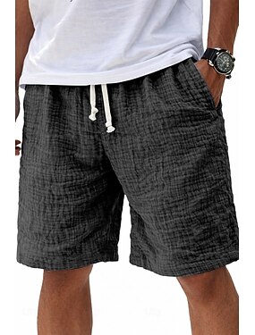 Pánské Kraťasy Lněné šortky Plážové šortky Šortky Seersucker Texturované kraťasy Šňůrky Elastický pas Bez vzoru Pohodlné Prodyšné Nad kolena Denní Venkovní Plážové prázdniny Módní Černá Béžová Lehce