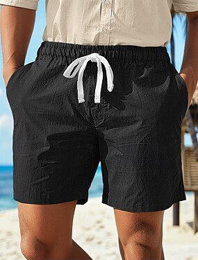 Pánské Kraťasy Lněné šortky Letní šortky Plážové šortky Šňůrky Elastický pas Bez vzoru Pohodlné Prodyšné Délka kolen Venkovní Denní Plážové Módní Klasický styl Černá Bílá