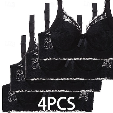 4 ks dámských krajkových podprsenek s vyztužením, podprsenek s kosticemi, plné krytí, 3/4 košíčku, prodyšné, čisté barvy, háček &sportovní brýle na oči 1ks bílá růžová
