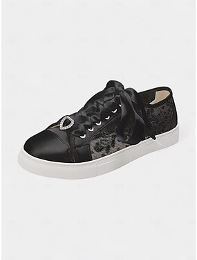 Svatební krajkové svatební tenisky – elegantní nízké tenisky v barvě slonové kosti s tkaničkami ze saténové stuhy a kamínkovým detailem pro nevěsty a zvláštní příležitosti