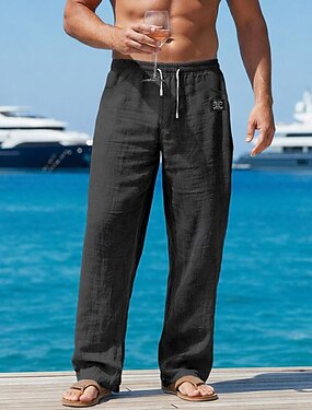 Pánské Plátěné kalhoty Kalhoty Letní kalhoty Plážové kalhoty Šňůrky Elastický pas Straight-Leg Bez vzoru Pohodlné Prodyšné Plná délka Ležérní Denní Dovolená Módní Klasický styl Černá Bílá