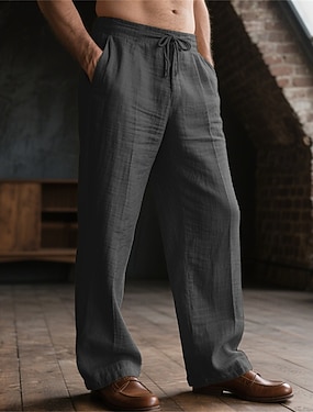 Pánské Plátěné kalhoty Kalhoty Letní kalhoty Volné kalhoty Plážové kalhoty Šňůrky Elastický pas Straight-Leg Bez vzoru Lehká váha Prodyšné Plná délka Ležérní Denní Venkovní Módní Klasický styl Čern
