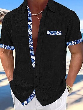 Pánské Košile Lněná košile Popover košile Letní košile Oblečení na pláž Bez vzoru Dovolená Černá Bílá Námořnická modř Nebeská modř Krátký rukáv Košilový límec Léto Jaro Oblečení