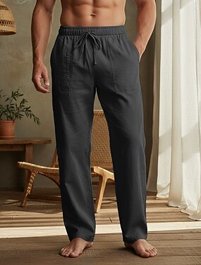 Pánské Plátěné kalhoty Kalhoty Letní kalhoty Volné kalhoty Plážové kalhoty Šňůrky Elastický pas Straight-Leg Bez vzoru Pohodlné Prodyšné Plná délka Ležérní Denní Venkovní Módní Klasický styl Čern