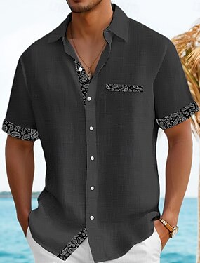 Pánské Košile Lněná košile Letní košile Plážová košile Nezastrčené košile Pléd Dovolená Denní nošení Černá Světlá růžová Oranžová Světle modrá Krátký rukáv Límeček Léto Oblečení