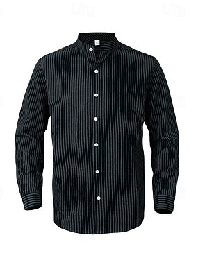 Pánské Košile plátěná košile Košile s páskovým límečkem Letní košile Oblečení na pláž Košile na knoflíky Bez vzoru Ležérní Denní Černá Bílá Vodní modrá Dlouhý rukáv Kulatý límeček Jaro léto Oblečení