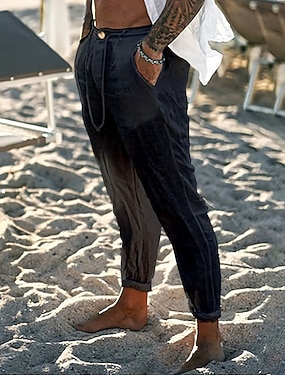 Pánské Plátěné kalhoty Kalhoty Letní kalhoty Plážové kalhoty Kapsy Šňůrky Elastický pas Bez vzoru Pohodlné Prodyšné Denní Dovolená Plážové Havajské Cikánský Černá Bílá