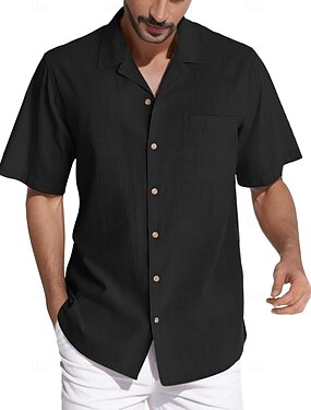 Pánské Košile Lněná košile Vikingský styl Letní košile Oblečení na pláž Košile na knoflíky Pevná barva Dovolená Curise Černá Bílá Námořnická modř Khaki Krátký rukáv Límeček Léto Jaro léto Oblečení