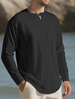 Pánské Košile Lněná košile Košile pro volný čas Bavlněná košile Bez vzoru Dovolená Havajské Černá Bílá Tmavě zelená Khaki Dlouhý rukáv Tričkový Jaro Podzim Oblečení Záhyby