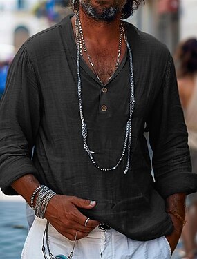 Pánské Košile Lněná košile Popover košile Letní košile Oblečení na pláž Košile pro volný čas Bez vzoru Dovolená Ležérní Černá Bílá Světlá růžová Námořnická modř Dlouhý rukáv Henley Jaro léto Oblečení