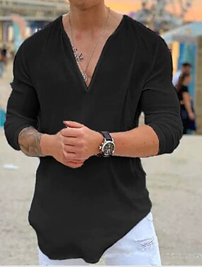 Pánské Košile Letní košile Oblečení na pláž Košile pro volný čas Tričko Trička Pevná barva Venkovní Dovolená Černá Bílá Vodní modrá Khaki Dlouhý rukáv Do V Léto Oblečení