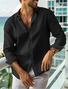 Pánské Košile Lněná košile Košile na knoflíky Bez vzoru Dovolená Ležérní Černá Žlutá Námořnická modř Hnědá Dlouhý rukáv Klopa Léto Podzim Oblečení Knoflíky