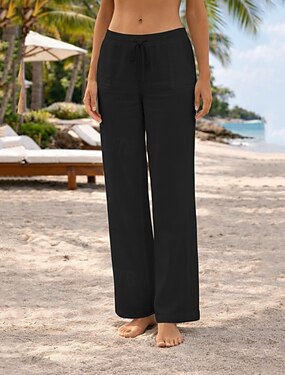 Dámské Bavlněné plátěné kalhoty Široké nohavice Kalhoty chinos Letní kalhoty prázdniny Šik ven Na běžné nošení Plná délka Středně vysoký pas Bez vzoru Šňůrky Kapsy Pohodlné Lehce elastické Denn