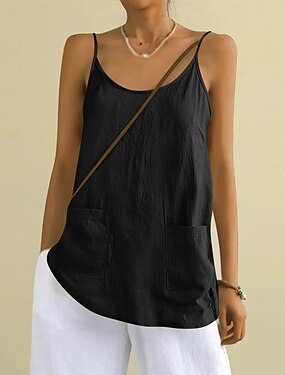 Dámské Tílko do košilky Imitace bavlny a lnu Nabírané šaty Pevná barva stylové Na běžné nošení Bez rukávů Tričkový Běžné topy Denní Černá Bílá Trávová zelená Léto