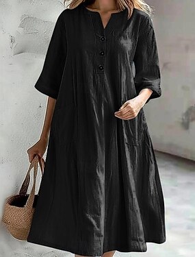 Dámské Midi šaty Imitace bavlny a lnu Úpletové šaty Smock šaty Jednobarevné Základní Na běžné nošení Dovolená Dar Volný 3/4 délka rukávu Tričkový Vodní modrá Černá Bílá Světle zelená Léto Jaro